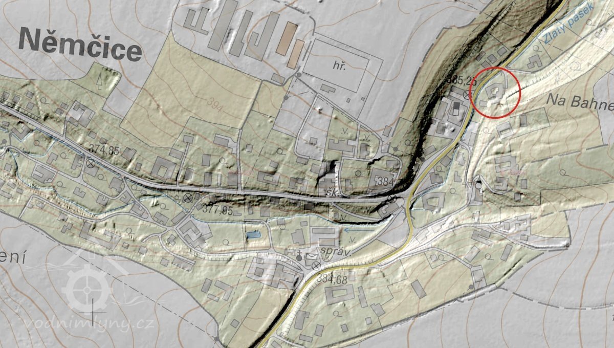 PopisVzhledem k terénním podmínkám a nevelké síle vodního toku je jisté, že od počátku existence mlýna jej pohánělo vodní kolo na vrchní vodu. Tuto skutečnost Vodní kniha v roce 1874 stručně potvrzuje: „Ze zmíněných dvou svrchovodních kol jest mlýnské 5,2 metru a pro vodní pilu sloužící 4,6 metru v průměru vysoké.“