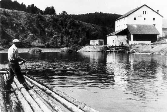 Mlýn s pilou. Dlouhá léta zde Stanislav Kuchař mlynařil a v roce 1938 se stal dokonce starostou. Jez na mlýně byl na Vltavě poslední, který měl uzavíratelnou propust. Kuchař ji nechal vystavět, když se stal starostou.