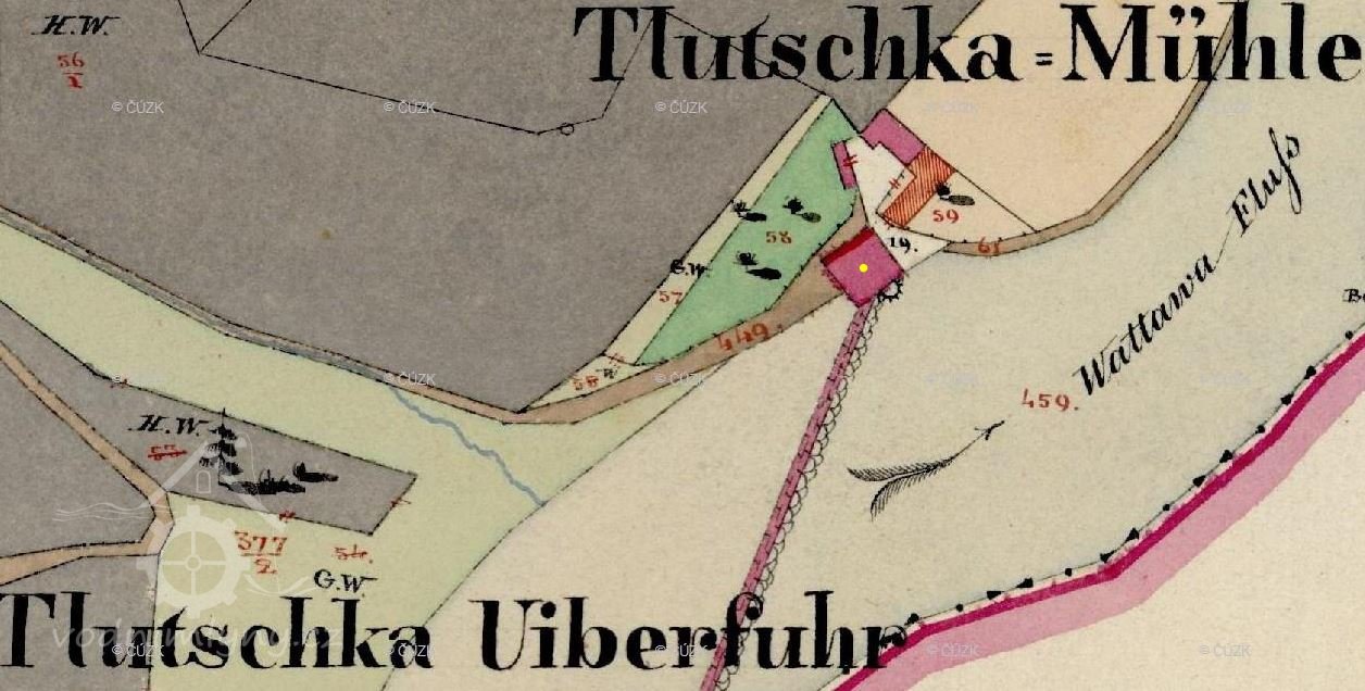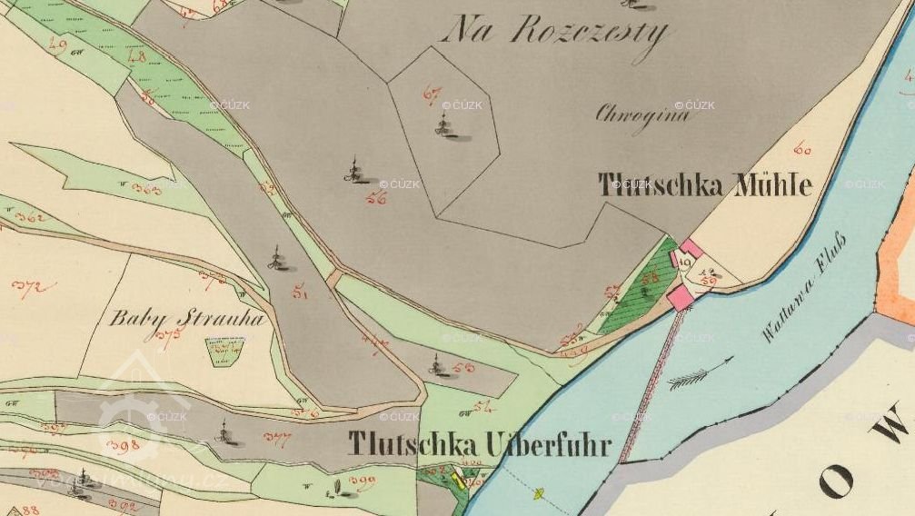 1764-1768 na mapách i. vojenského mapování uveden jako Tlučkův