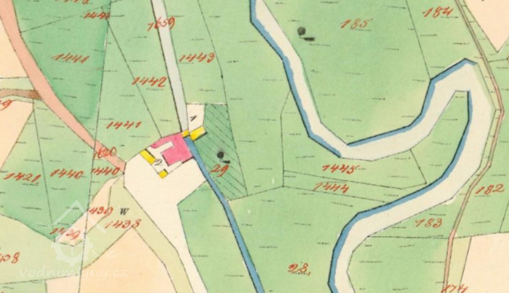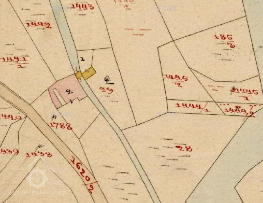 r. 1813 - mlýn přestavěn na zděný, využity základy u strouhy