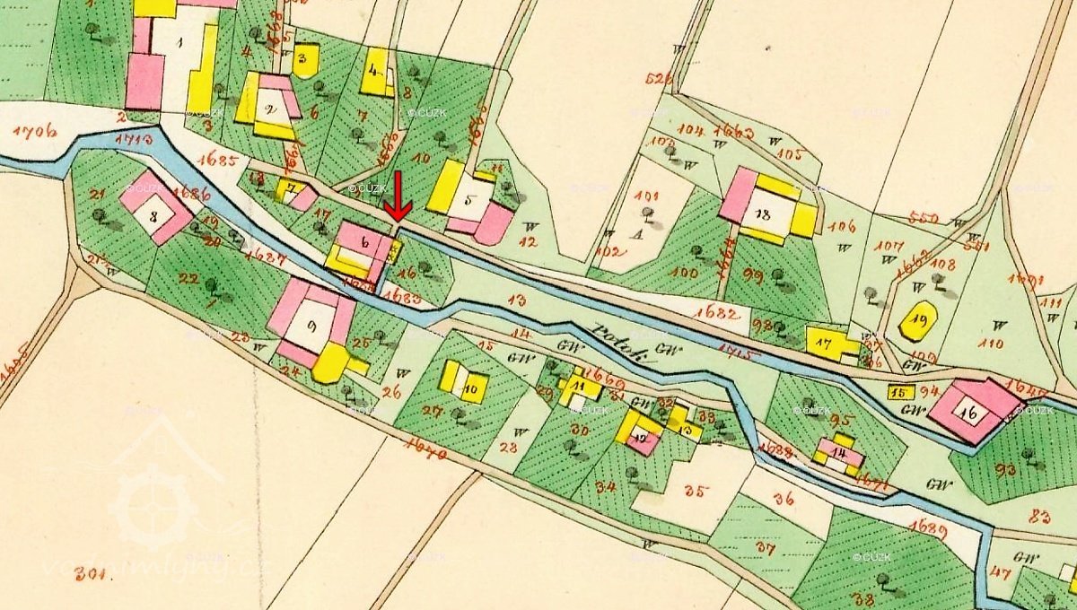 Náhon vyskládaný z pískovcových kvádrů a propusť u jalového žlabu, 2002, © Urbánek, (Prvky na obrázku: náhon, jalový žlab)