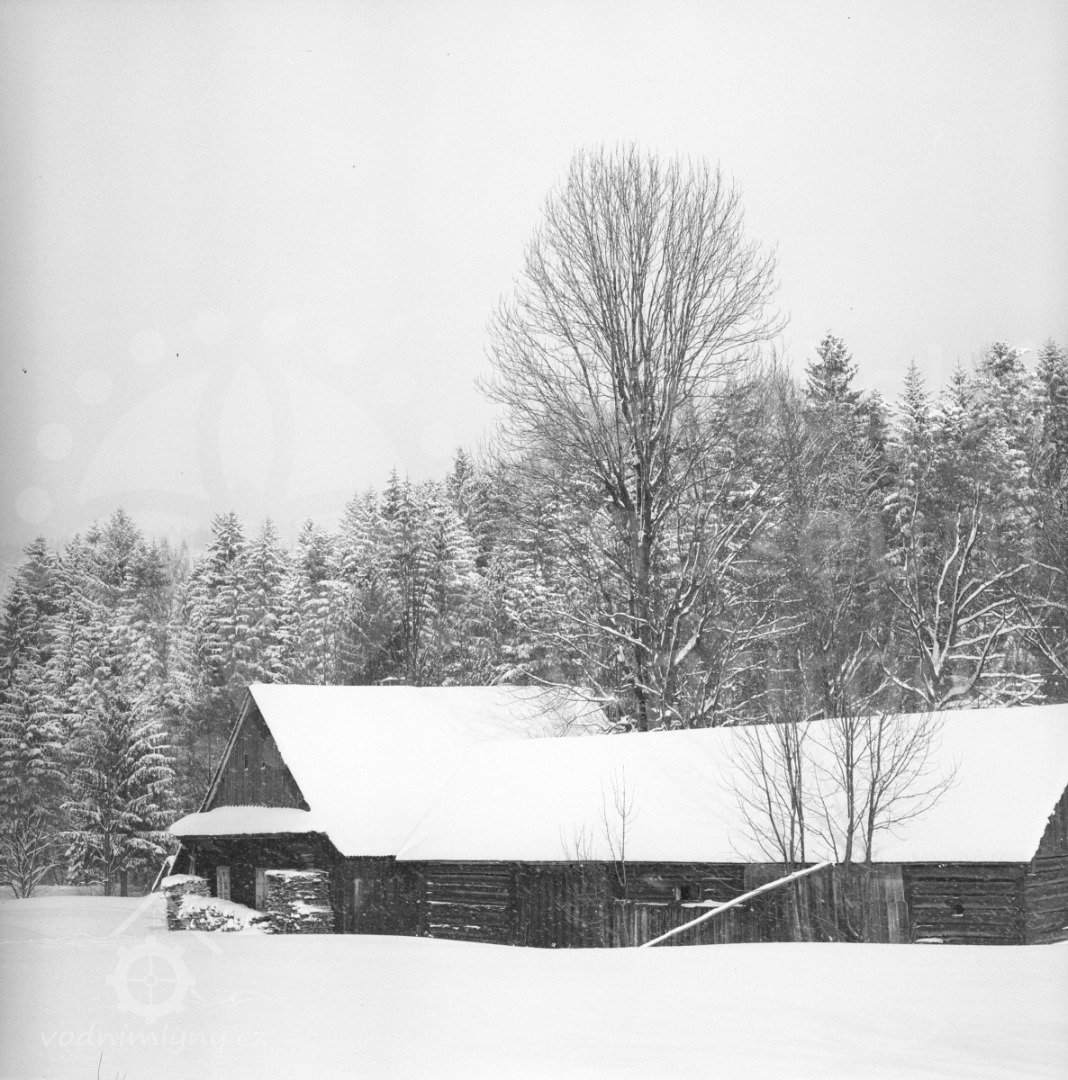 Mlýn se stodolou na původním místě, 1971, © www.nmvp.cz/roznov