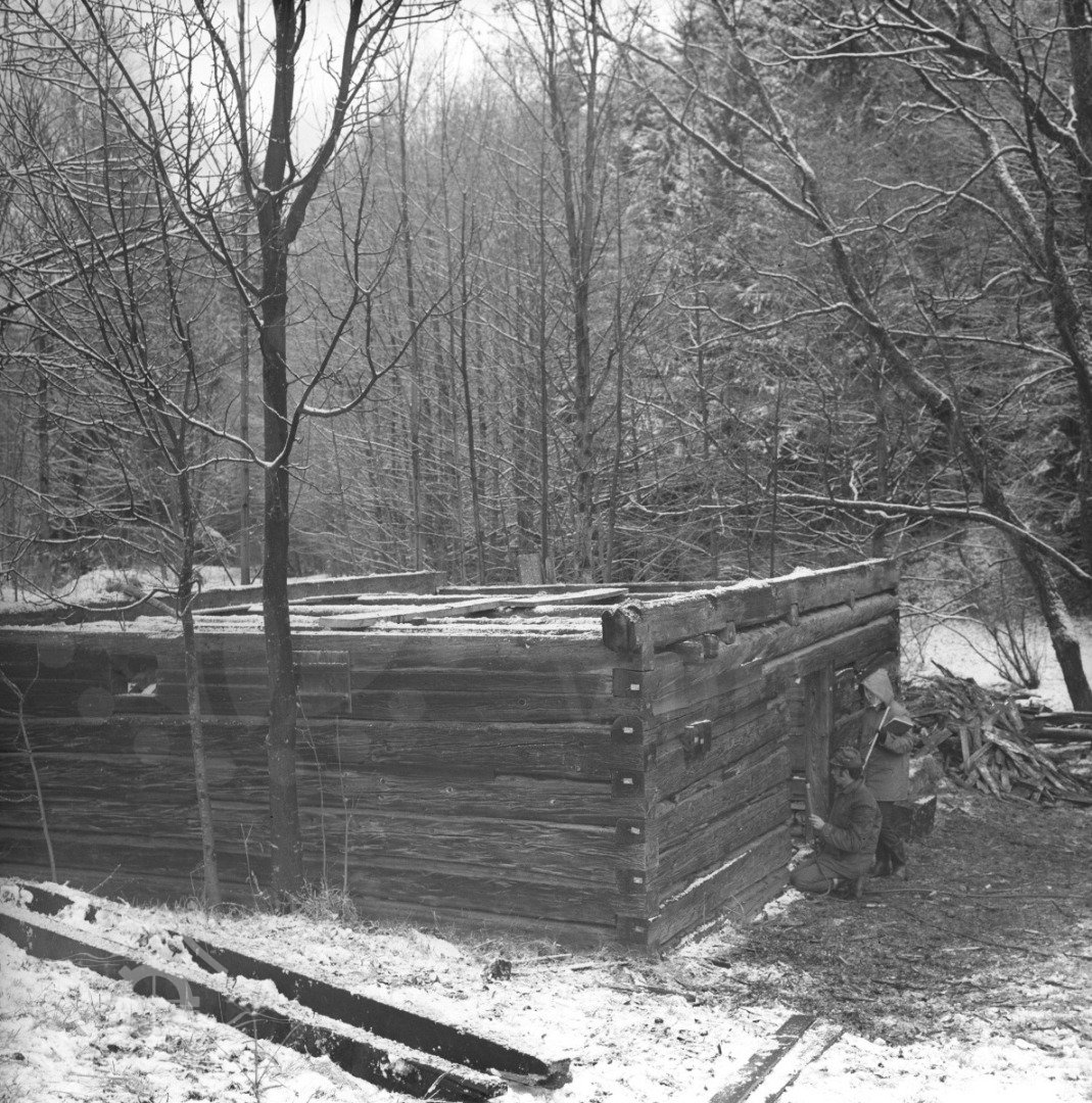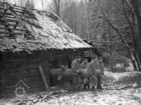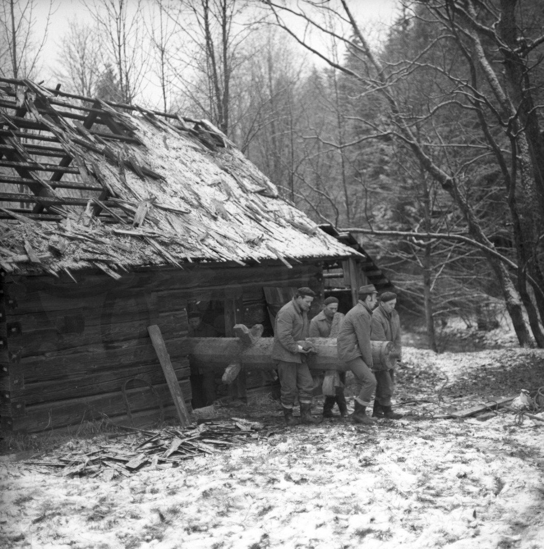 Stavba mlýna na novém místě - vantroky, lamfešty, 1982, © www.nmvp.cz/roznov