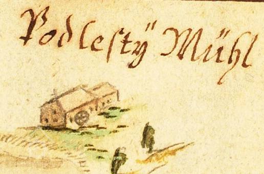 Mlýn stojící pod vysokou hrází Podleského rybníka je údajně ze středověku. Mlýn byl údajně svobodný, nepodléhající robotě.