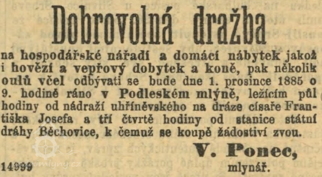 1814 prodal mlýn Janu Kapounovi za 3.000 zl. 30 kr.