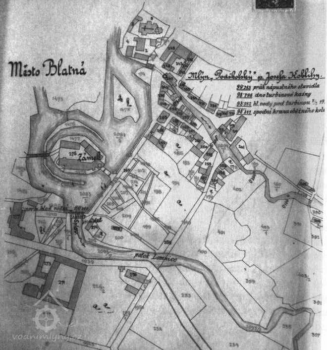 1773 4 stoupy, k mlýnu příslušní mleči z 1/2 Buzic, 1/2 Blatné a Pacelic (1789 Josef II. povinné přidělení zrušil)