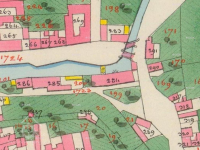 Výpisové o smlouvě synů mlynáře Zdebora s obcí Vodňanskou r. 1477, strany valchy soukeníkův u Kamenného mlýna.