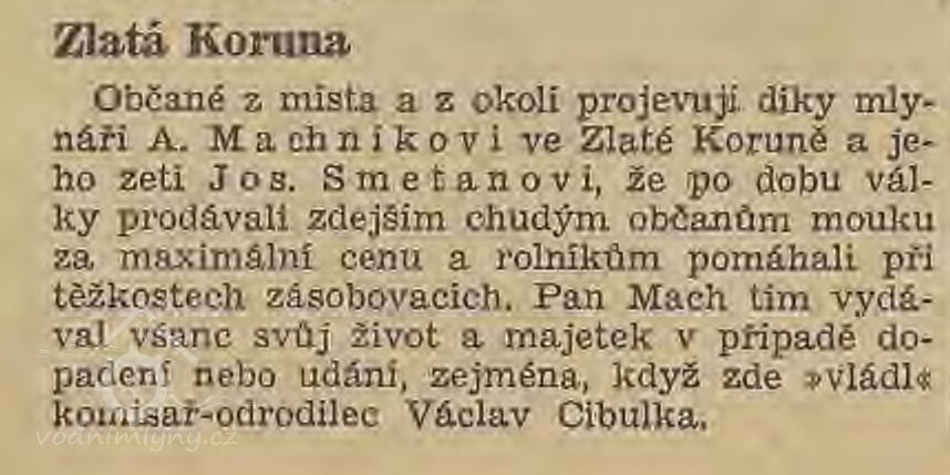 V roce 1930 byl majitelem mlýna a pily Alois Machník. (HŠ)