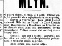 1895 dražba mlýna v odhadní ceně 26.368 zl. (RR)