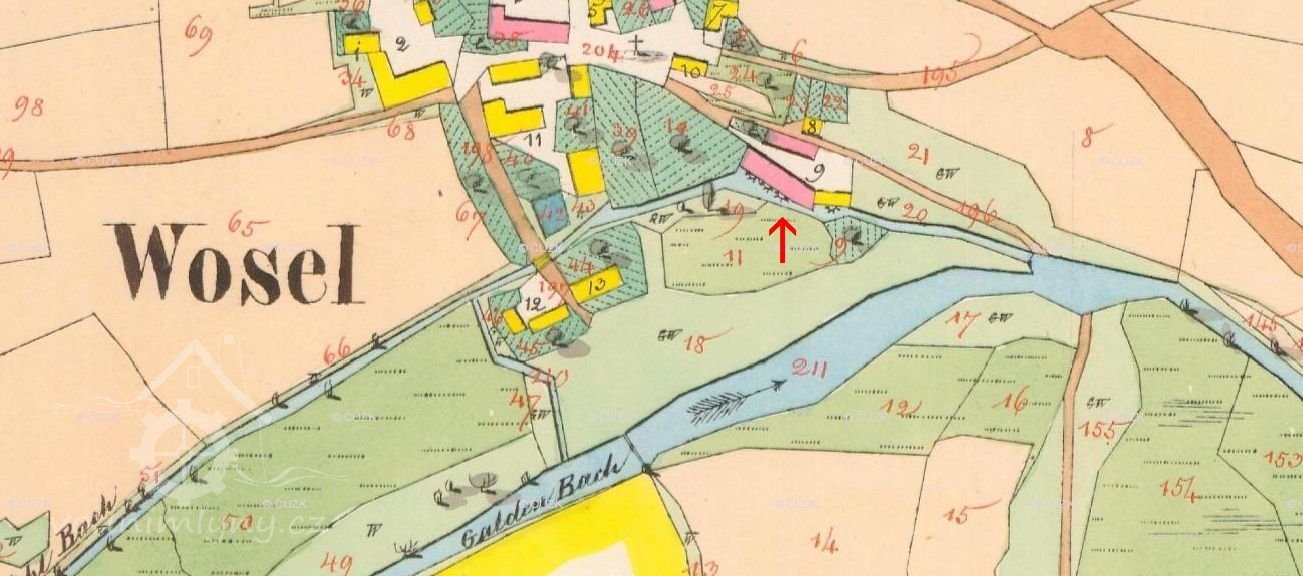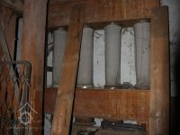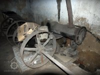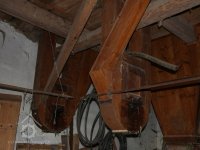 Hlavní transmise s převody na mlecí kámen a lehčení, 2014, © Šimek, (Prvky na obrázku: transmise, řemenice, převody)
