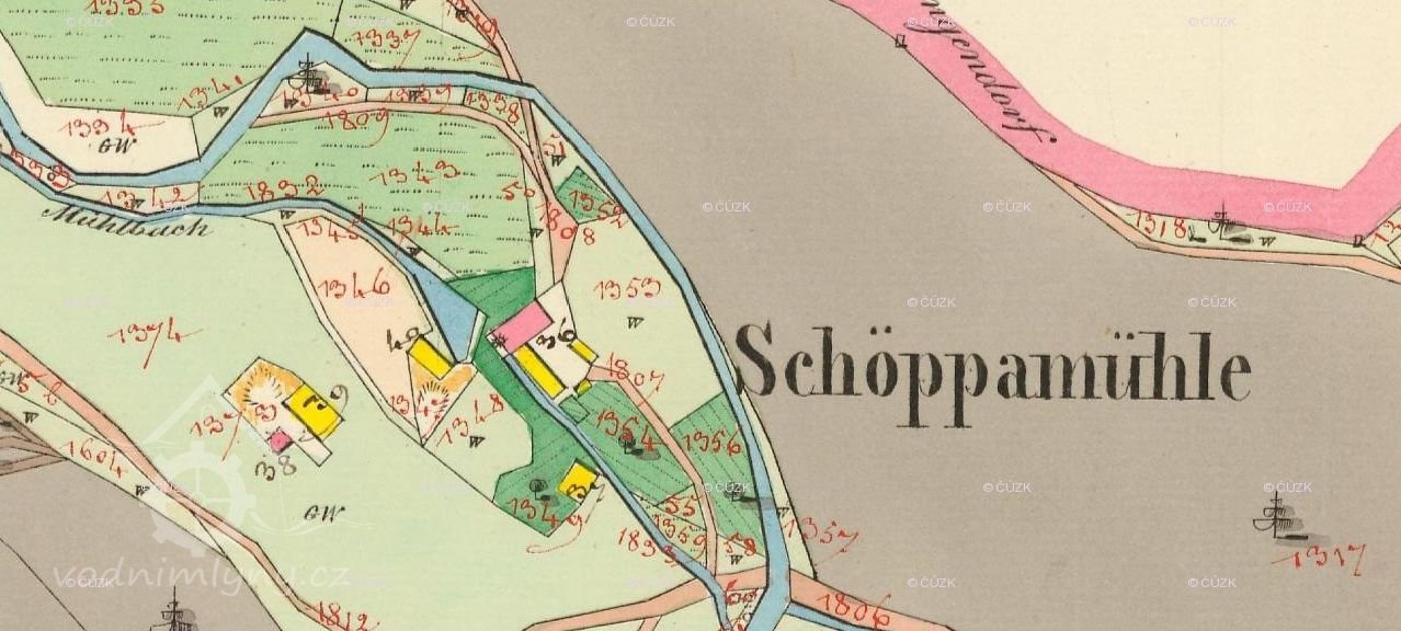 V roce 1930 vlastnil mlýn Lorenz Glosauer a vodní tok se nazýval Šepy. (RŠ)