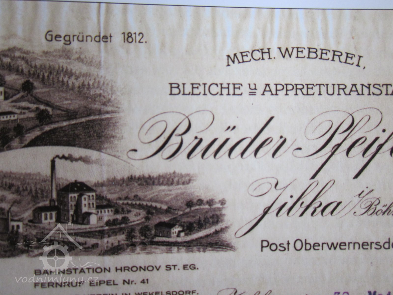 V r. 1846 se uskutečnila příslušníky rodiny Pfeiferů přestavba původního mlýna na mechanickou tkalcovnu lněného a bavlněného zboží s bělidlem.