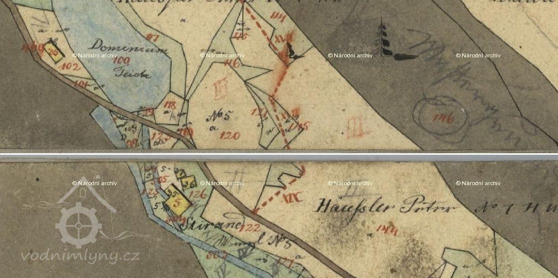 V Tereziánském katastru jsou již v Jívce uvedeni 2 mlynáři. První mlynář má mlýn o jednom kole na nestálé vodě, zakoupený od vrchnosti / jde asi o č.p. 1, dolní mlýn/. Druhý mlynář si svůj mlýn postavil rovněž na nestálé vodě-jde o mlýn horní, č.p. 5.