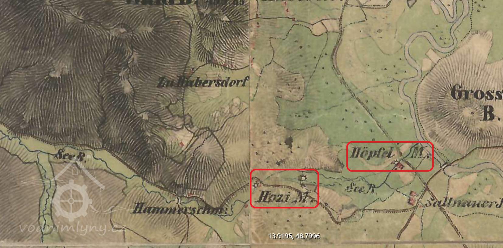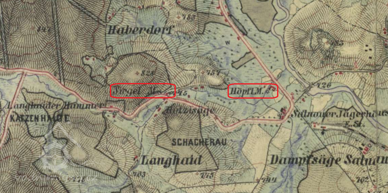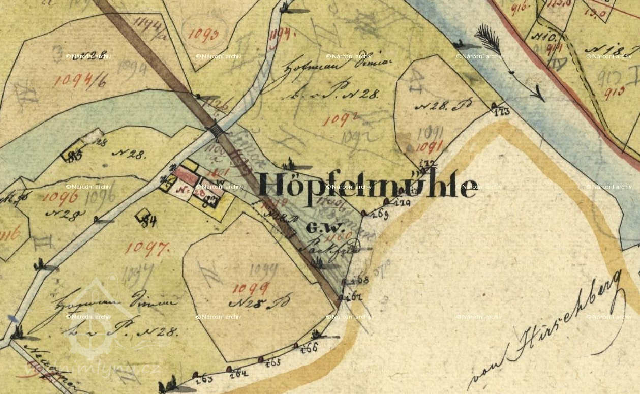 Mlýn a pila postaveny kolem roku 1500 na Jezerním potoce , stavení č.p. 42 . Mlynářské právo a vlastnictví zde vystřídalo několik rodů , až do roku 1910 ,kdy Höpfelův mlýn a pilu koupil kníže Schwarzenberg za 10000 zlatých a obsluha připadla zdejší knížecí lesní správě.