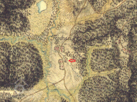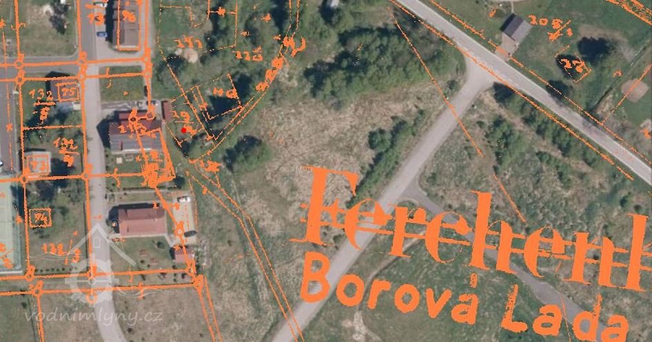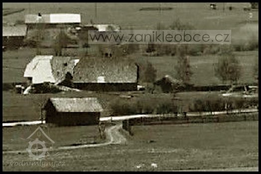 Skupina obytných domů a hospodářských budov v k.ú.Borová Lada.Zobrazena na mapě Stabilního katastru :Čechy:0387-2-Borová Lada,mapový list č.005.