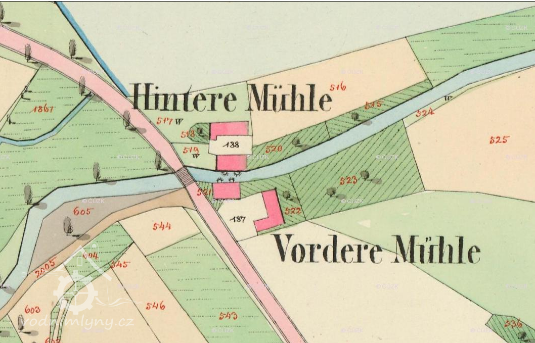 V roce 1812 koupili Zadní mlýn Petr a Marie Deylovi ze Štětína za 30000 zl. Hned následujícího roku jej však za 6 515 zl. prodali Františkovi a Terezii Waltrovým, kteří v roce 1814 mlýn prodali Josefu a Terezii Jakoubi.