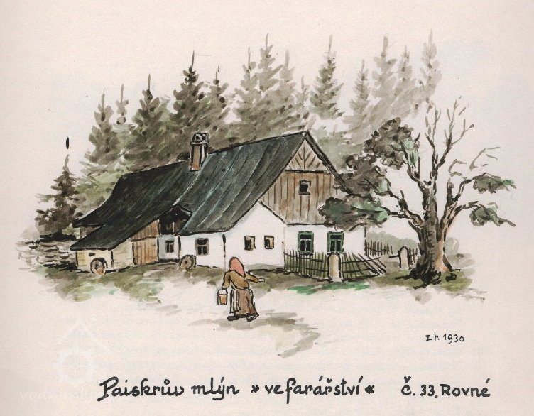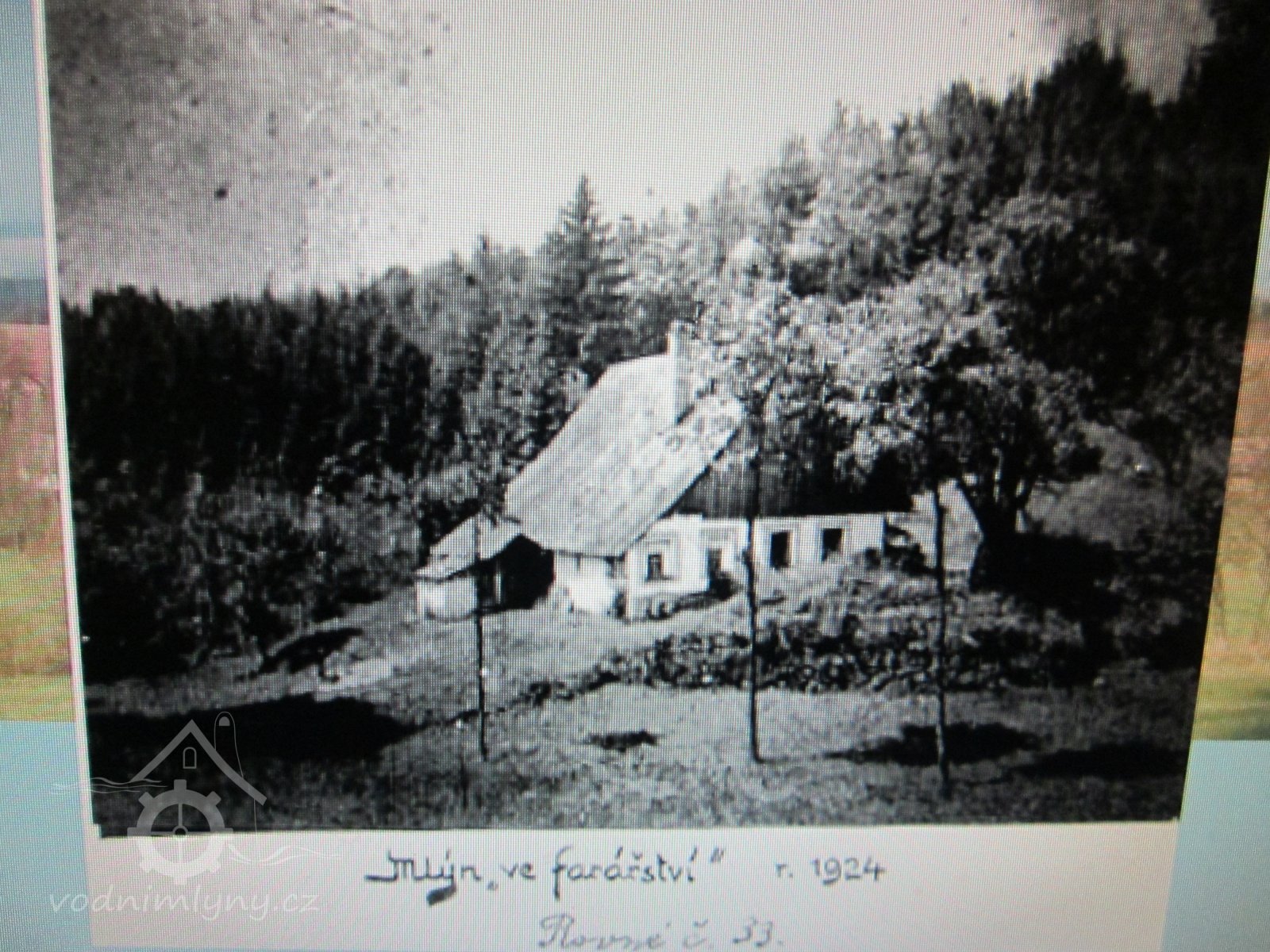 Mlýn stál úplně v lese, jen ze strany mlýnského průčelí byl malý sádek. Tam také stávala stará velká hrušeň, zvaná "horka". Podobala se mohutné lípě a byla uvnitř dutá. Na samotě u mlýna hnízdívala sova a zatoulala se sem i liška, zdomácněla tu velká užovka, která se každé ráno po dojení připlazila napít mléka - zkrátka byl to pravý lesní mlýn.