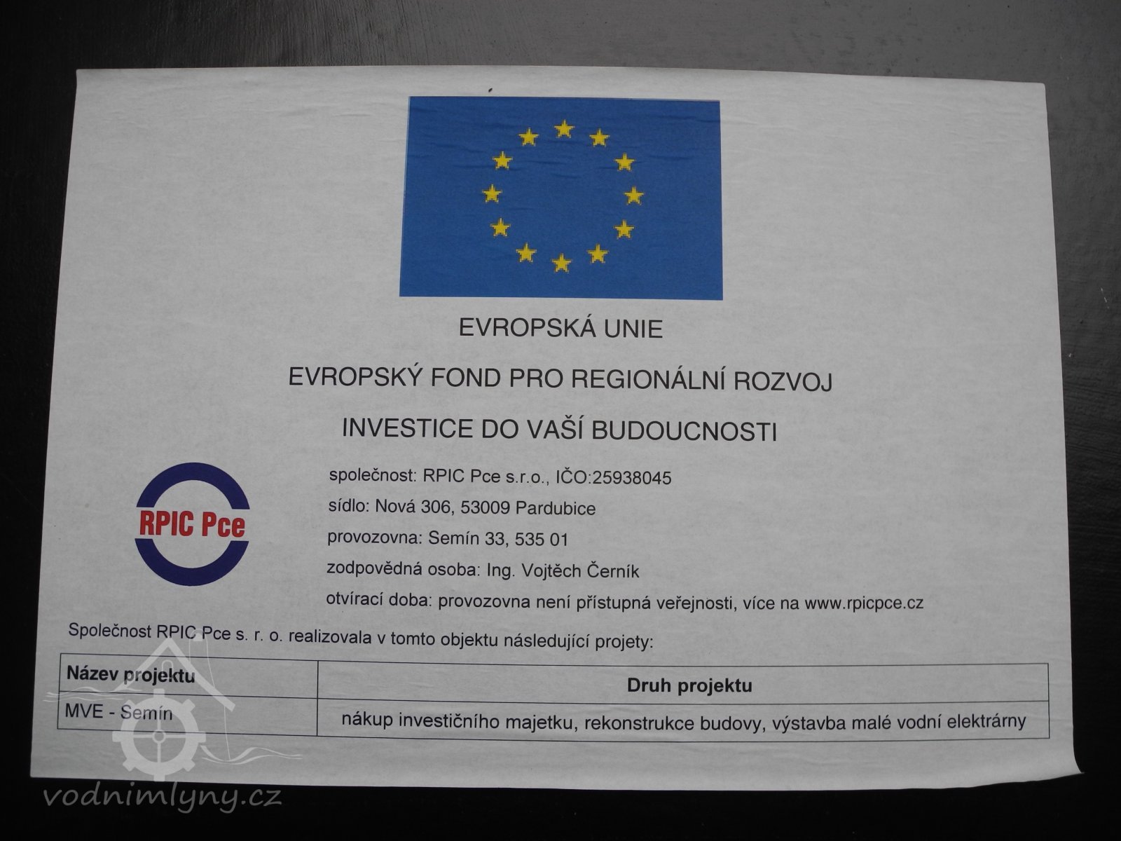 Jednalo se o Francisovu turbínu číslo 1, průměr 85 cm, spád vodního toku je 3,88 metru, průtok 2,2 krychlových metrů za vteřinu. Užitečný výkon turbíny byl 0,78 HP a výkon 88,7 HP. (RR)