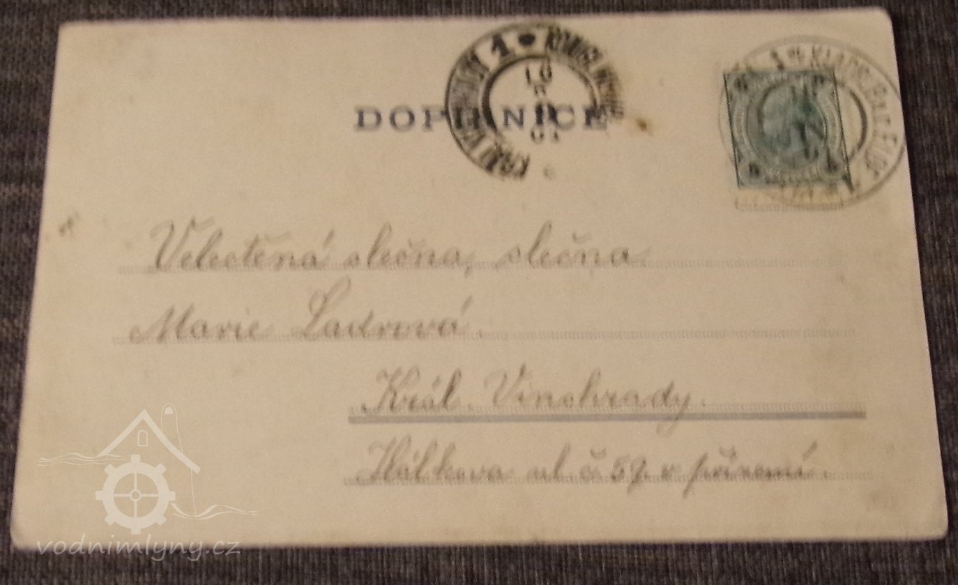 C. k. okresní hejtmanství v Pardubicích zasílá stížnosti držitelů mlýnů na Opatovickém kanále - Jana Rejholce ze Semína, Jana Macháčka z Výrova, Otokara Haněla z Bohdanče, č. p. 146, Marie Duškové, č. p. 147, Václava Prokeše ze Ždánic, Josefa Šípka z Živanic, Václava Novotného z Černé u Bohdanče - kvůli zastavenému přívodu vody do Opatovického kanálu, a sice za účelem podání žaloby, případně k vyjádření.