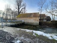 hospodářská budova v areálu, 02 2019, © Jana Sommrová, (Prvky na obrázku: jez, stavidlo)