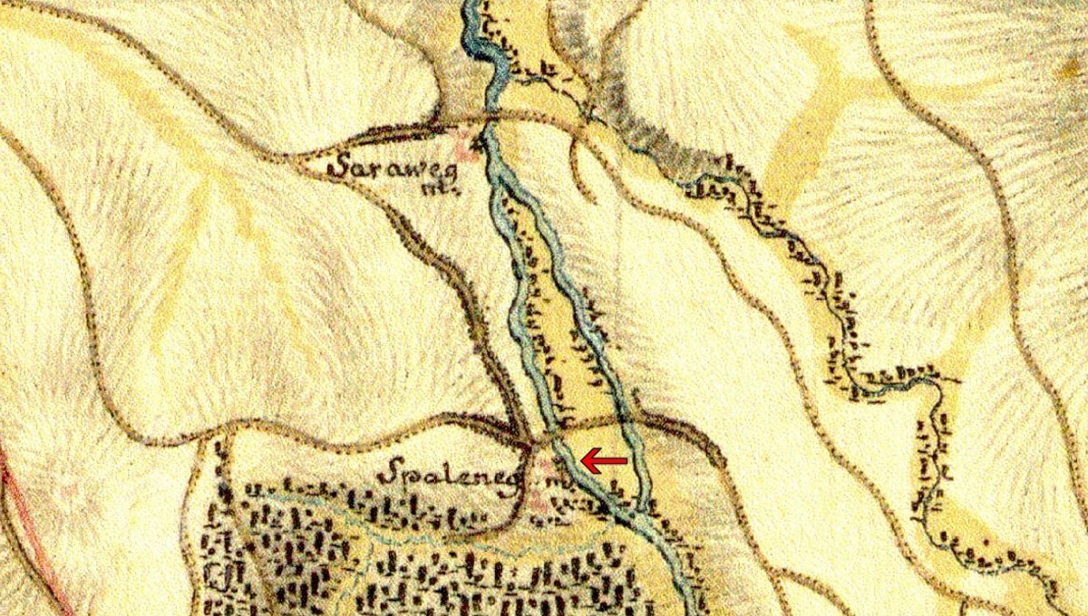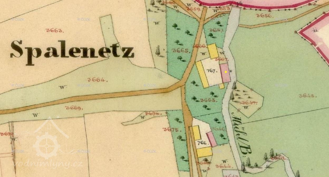 1456 rozmíška mezi mlynářem Mikulášem a Viktorinem Motovúzem skončila smírem. V narovnání zmíněny dvě cesty k mlýnu: 1) od obce pod dolci k lukám 2) od kostelíka někdy sv. Mikuláše úvozem. Mlynáři Mikulášovi přiznáno právo po posečení luk užívat obě cesty od mlýna podle strúhy ku stavu.
