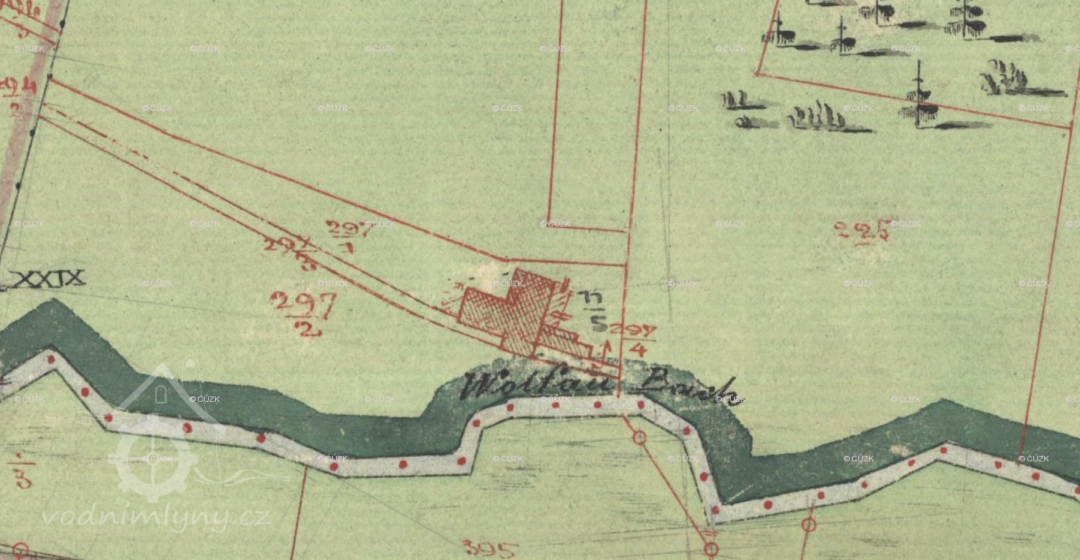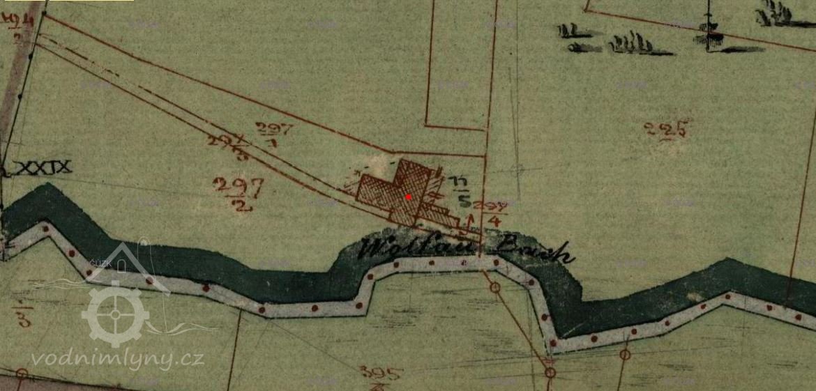 Mlýn je pouze dodatečně vkreslen do Císařského povinného otisku, vznikl tak až po roce 1837.