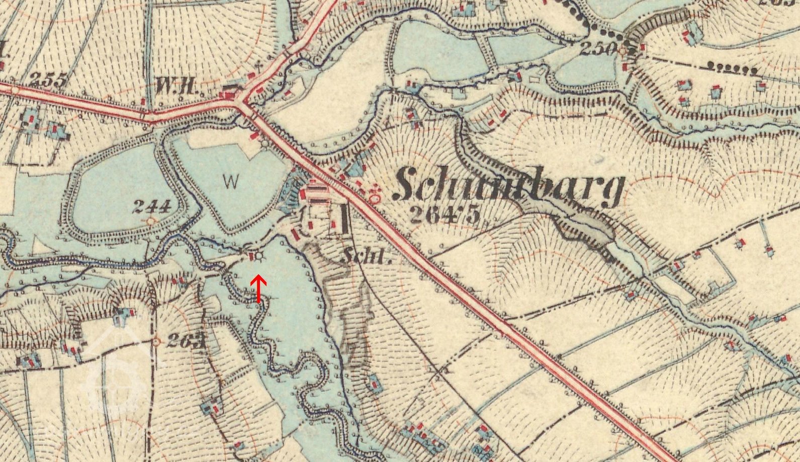 Budovy mlýna stály ještě v r. 1947.