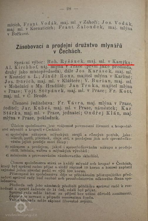 1800 Zeman, vdova Marie pronajala mlýn Vratislavu Zemanovi, statkáři v Kamýku