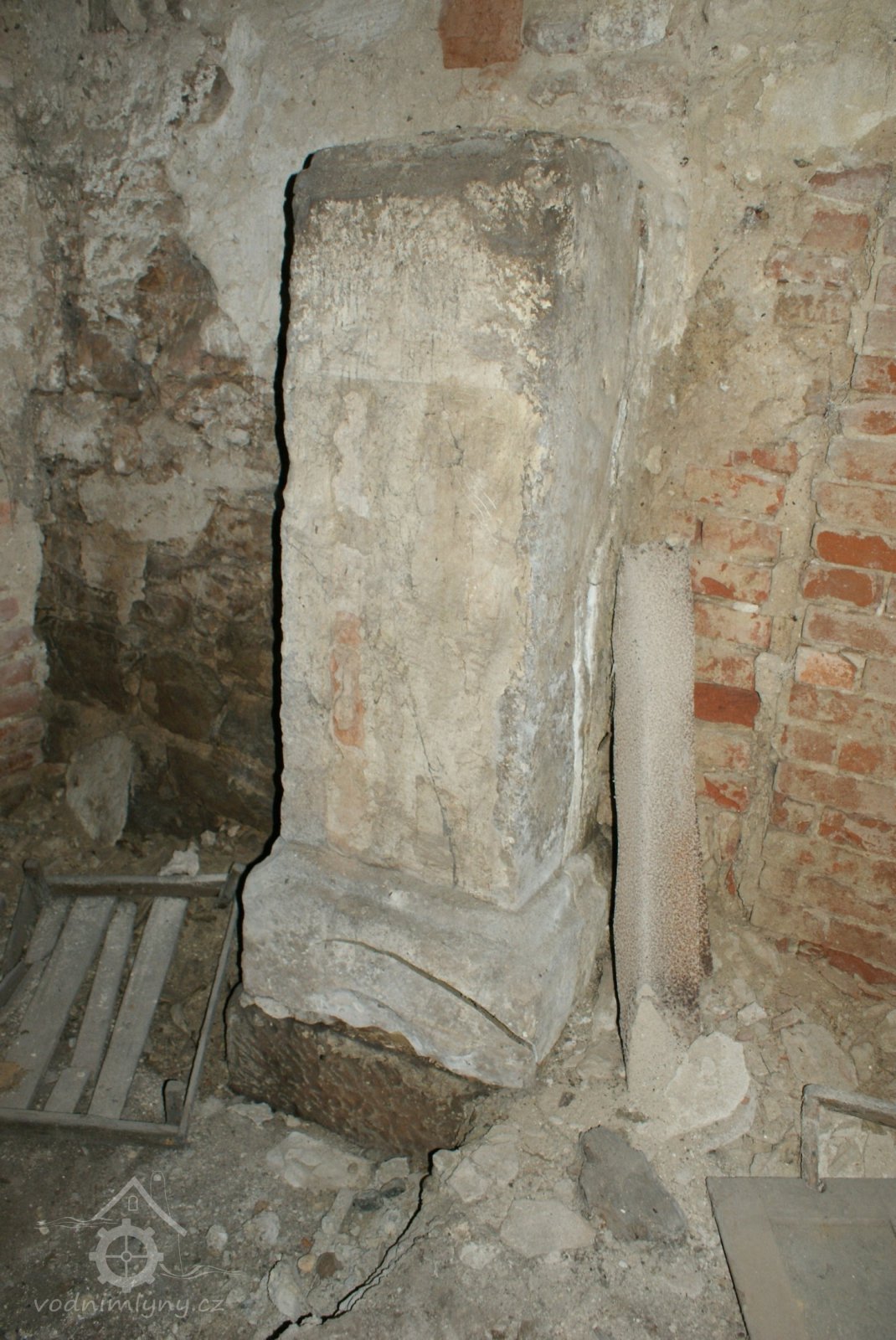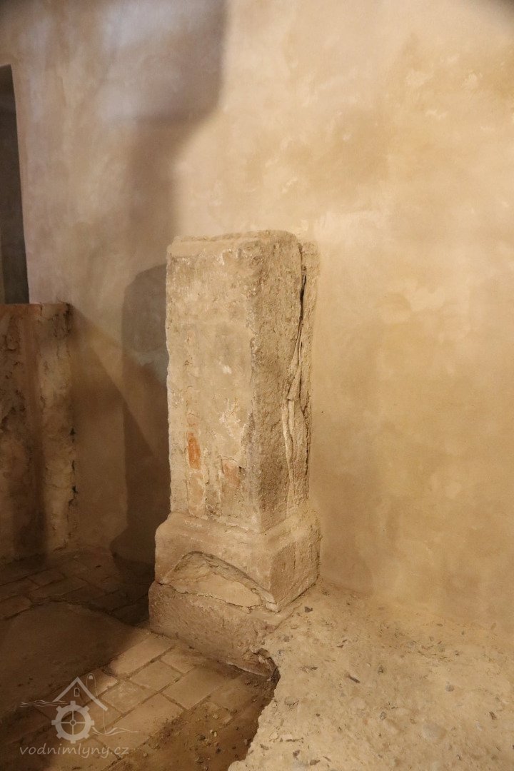 Kamenný sloup mlýnské hranice s drážemi pro dvě příčky lehčení, 2011, © Urbánek, (Prvky na obrázku: mlýnská hranice, mlýnská hranice s kamennými prvky)
