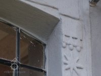Detail plastické výzdoby okenního ostění, 11 2022, © Jan Moravec, (Prvky na obrázku: okno, plastická omítková výzdoba fasád a štítů)