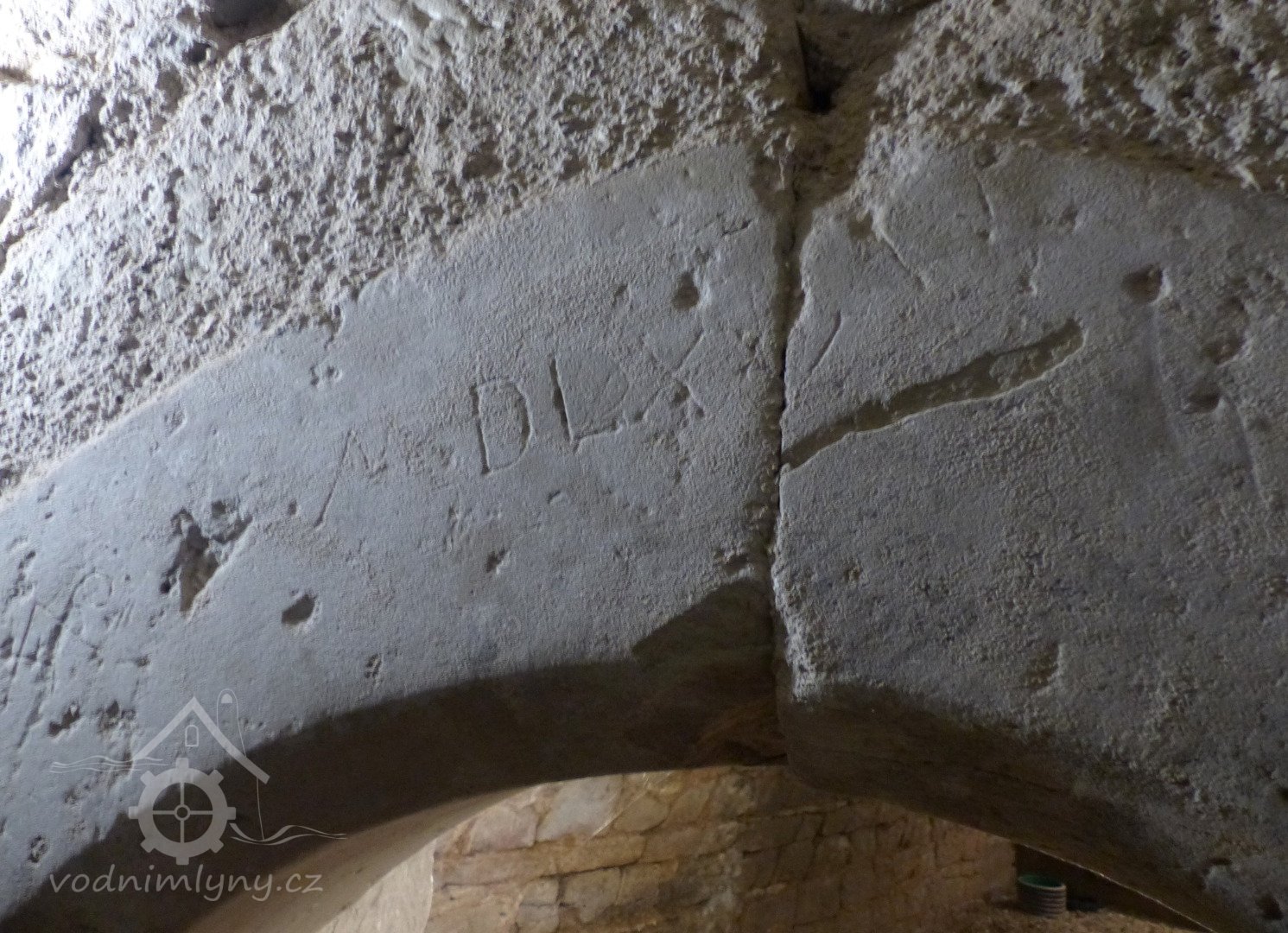 Letopočet 1575 na pozdně gotickém portálu ve sklepě, 11 2022, © Jan Moravec, (Prvky na obrázku: epigrafické památky (nápisy, datování aj.), kamenické prvky předbělohorské)