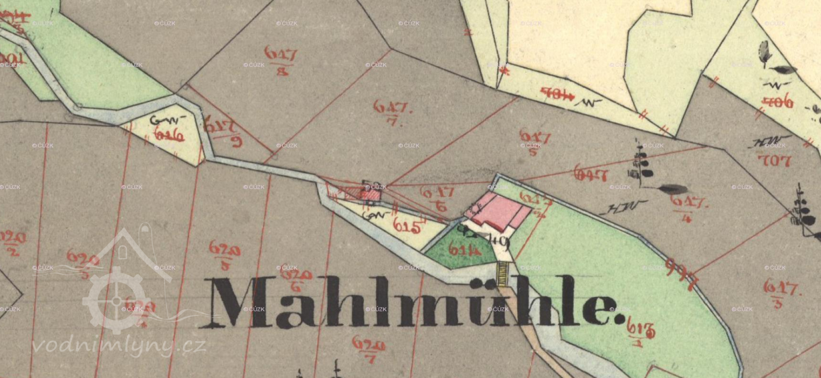 Objekt mlýna v katastrálním území Libínské Sedlo/Pfefferschlag/ je zobrazen na mapě Stabilního katastru:Čechy-4015-2, mapový list č.002.Původně se jednalo o dům čp.35/st.p.49-mlýn,obytné a hospodářské stavení a objekt mlýna/st.p.50.V roce 1931 po rekonstrukci bylo objektu na st.p.50 přiděleno číslo popisné 72.