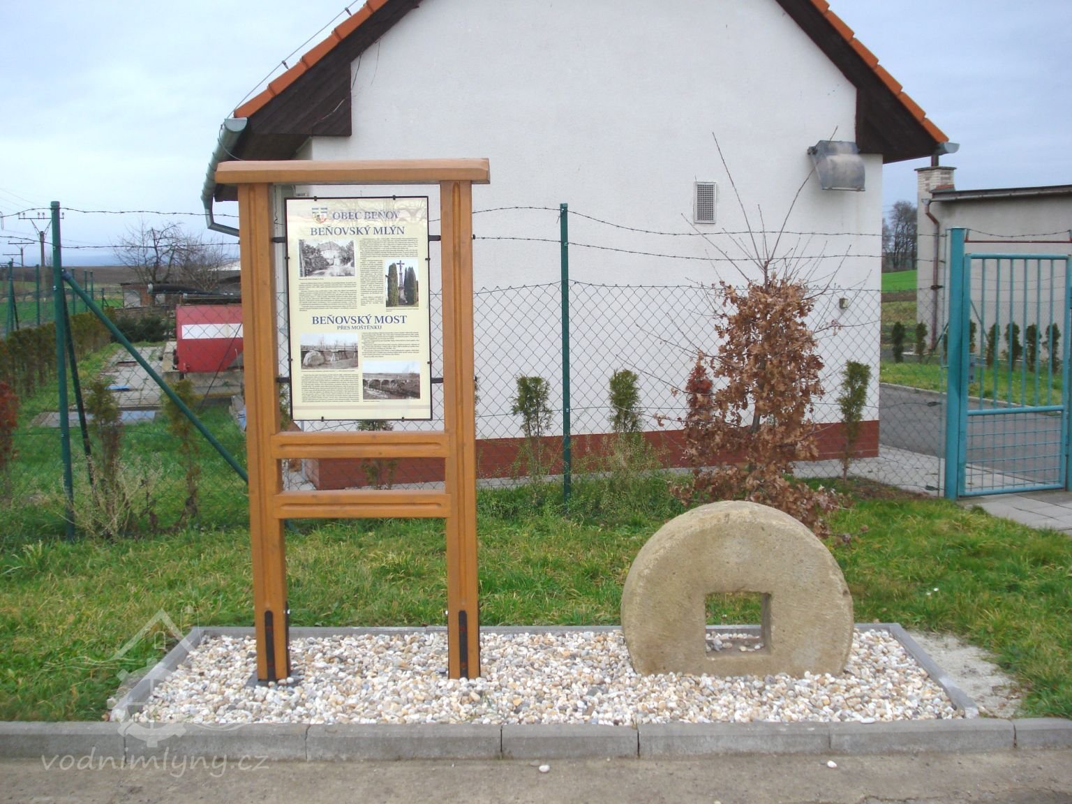 Mlýn stával na dolním konci obce Beňov u Moštěnky. Je pravděpodobné, že patřil k nejstarším mlýnům v širokém okolí, protože beňovský rektor František Mazač (působil v letech 1852-1883) našel mlýnské kamenné kolo s letopočtem 1241.