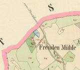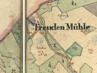 Výňatky z protokolu z 5. října 1881: "Komise sestoupivší se v mlýně samém, odebrala se na místo šetření a shledala, že mlýn - přízemkové to stavení dřevěné na kamenném spodku, šindelem kryté - je na levé, jižní straně vodovodu. Mlýn je zařízen na vrchní vodu a má jedno obyčejné složeni. Voda ku hnaní mlýnského stroje přichází z vrchu Kozákova, kdež vzniká v prameni zvaném Radostná. K zjištění nápadu (spadu) u mlýna toho vytesala se v kvádru rohovém v sedmé vrstvě zdi na severní straně budovy vodorovná rýha, a sice ve vodorovné výšce se středem čepu vodního kola, která byla vytesána a vyznačena dle připojeného obrazce. (V. K. 1881) Měřením se vyšetřilo následující: Dřevěný žlab je na začátku v nádržce 143 cm pod korunou hráze nádržky a leží 6,68 m nad rýhou - normálním znamením. Konec žlábku u kola 6,6 m, normální znamení leží 6,6 m nad půdou podkol. Obnáší tedy nápad mlýna toho 14,8 m. Na to přikročeno ku zjištění vodních práv tohoto mlýna, jež záleží dle výpovědi vlastníka mlýna, pak přítomného zástupce obce v nerušeném užívaní vody z pramene Radostné ku hnaní mlýna, pak ve vyklizení vodní strouhy bez odporu držitelů sousedních pozemků."