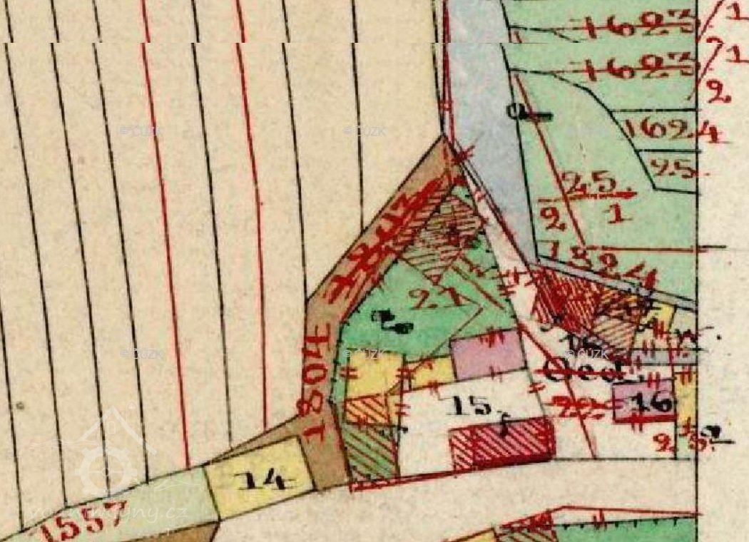 1654 Berní rula: majitel Václav Linarc, jest zkaženej do konce, u mlýna 1/2 lánu pozemků