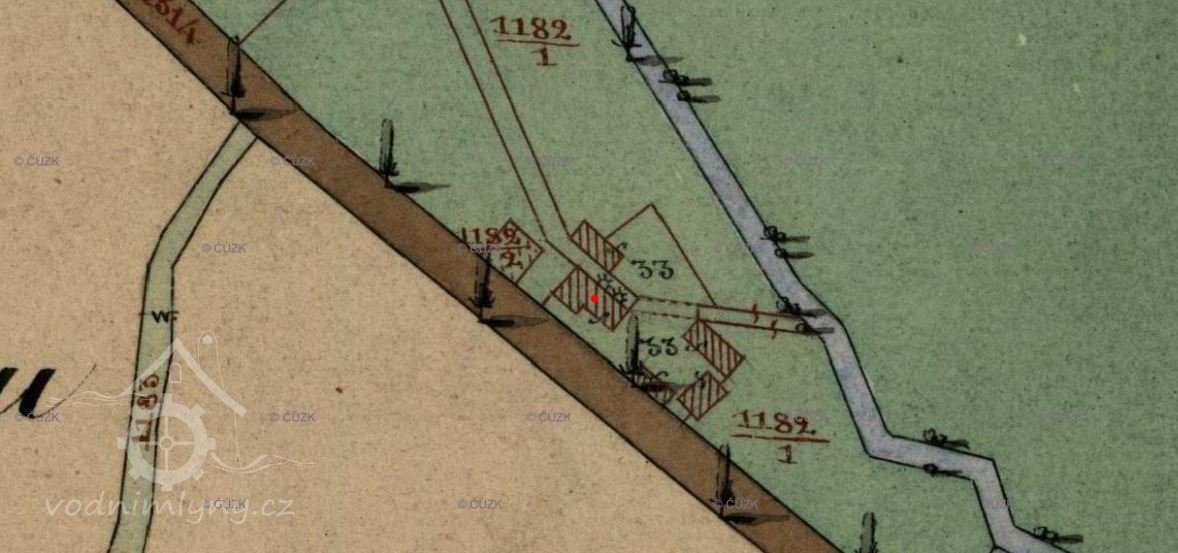 Mlýn vznikl až po roce 1839 - není vyobrazen na I. vojenském mapování. Na mapě je poprvé na Indikační skice kde je pouze vkreslen. Na Císařském povinném otisku z roku 1839 mlýn ani vodní dílo není. Mlýn je jasně vyobrazen na II. voj. map. (RŠ)
