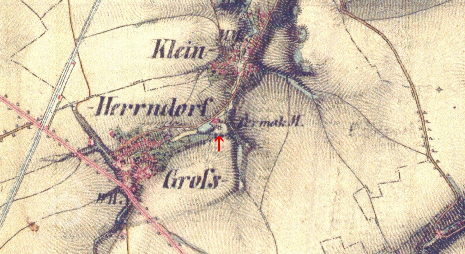 Nad mlýnem je rybník, Čermačka, přebudovaný na nádrž pro potřeby nedalekého zahradnictví