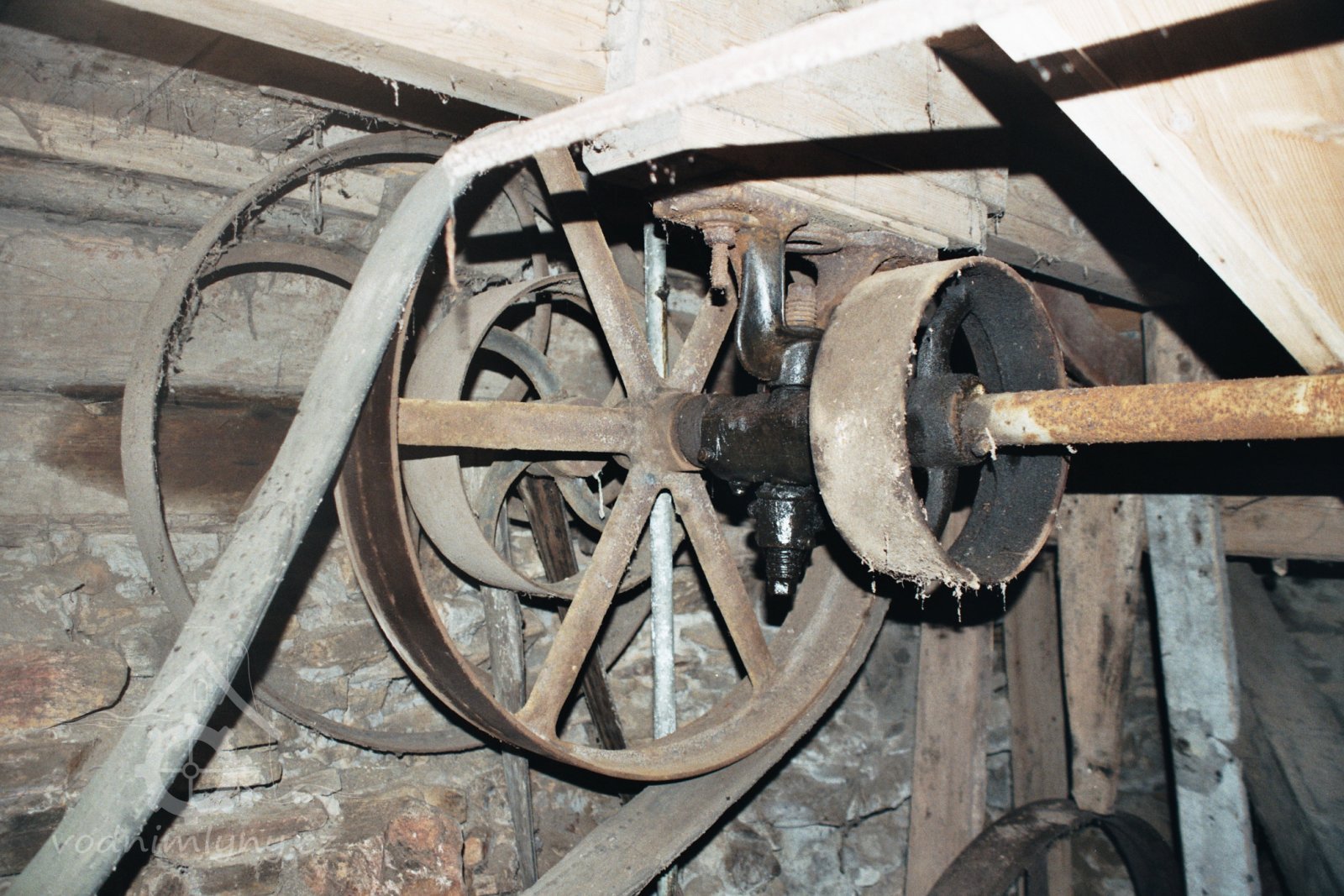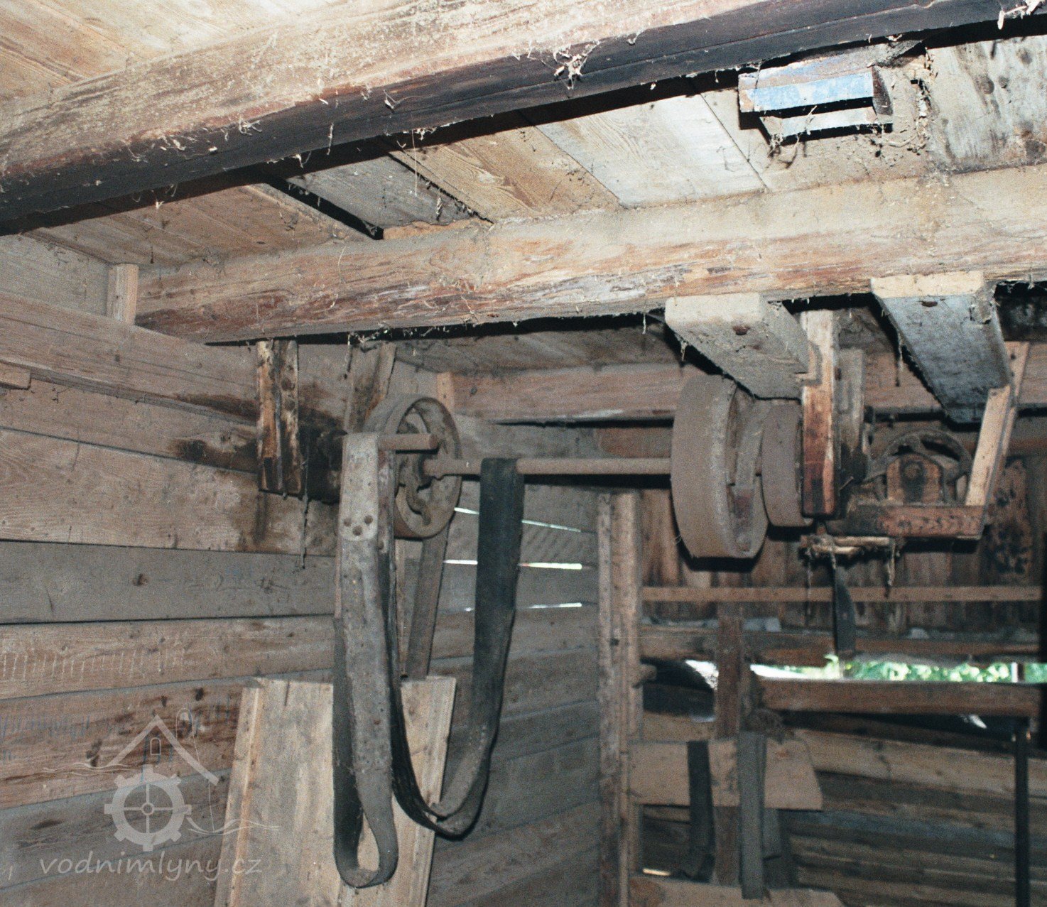 Hřídel od vodního kola prochází otvorem do podkolí. Na hřídeli je usazeno celodřevěné paleční kolo, jehož palce zapadají do litinového pastorku (pravoúhlý paleční převod) na hřídeli s velkou řemenicí, která pomocí plochého řemenu poháněla hlavní rozvodnou transmisi. Transmise se otáčí na ložiskových závěsech u stropu a po řemenech přenášela energii na ostatní mlýnské stroje. Též poháněla přes zkřížený řemen mlecí kamenné složení. V podkolí se dále nachází vzácný a dosud funkční naftový stabilní motor a v oddělené části pak zcela unikátní olejna.