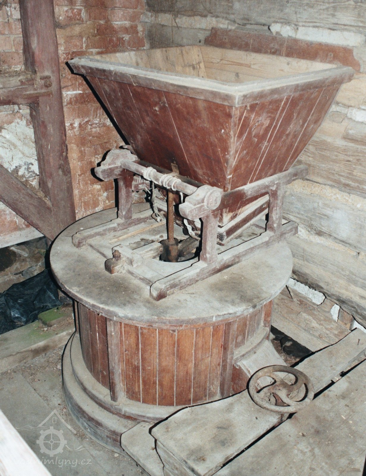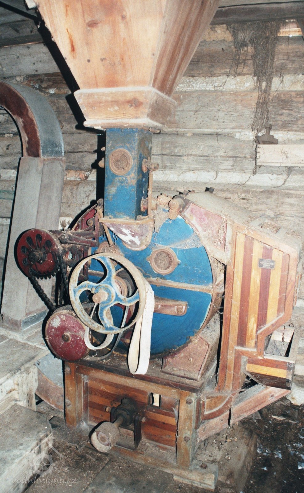 Zachován i zbytek jednoduché mlýnské hranice. V olejně nalezneme strojní lis poháněný transmisí mlýna přes předlohu s příslušenstvím. Na první podlaze stojí vzácná válcová stolice s rýhovanými válci v dřevěné skříni vyrobená před rokem 1885. Vedle ní stojí druhá válcová stolice, také s rýhovanými válci, avšak novější (cca konec 20. let 20. stol.) s litinovou skříní a válci nad sebou. U stěny mlýnice spatříme dochovanou velmi pěknou loupačku s filtrem. Také zde nalezneme dobře dochované kamenné mlecí složení s regulací, malou pytlovací lávku a moučnou truhlu. O patro výš nachází se pak unikátní moučný, hranolový vysévač bez pytlovací lávky. Vytříděné sorty produktu z vysévače totiž padaly do oddělených komor na způsob moučné truhly. Jsou zde hlavy některých kapsových výtahů. Dále - rozvodná transmise, jenž pokračuje do prostoru za mlýnici, kde stojí upravená mlátička s aspirací a proséváním, která pravděpodobně sloužila k jednoduchému čistění zrna přímo v mlecím procesu (náhrada taráru a žejbra). Zrno bylo vymláceno a rovnou mohlo postupovat na stroje mlýna. Popřípadě zrno mohl čistit i tzv. fofr (tarár). Za moučným hranolovým vysévačem je ozaen váýlcový koukolní a před jeho vstupem se nachází také pevný magnet. V rohu mají zajímavý skříňkový zápisovník, kde si mlynář vedl a zapisoval dokumenty o mletí. Pod střechou je pak jen malý hranolový předvysévač (sortýr), šnekový dopravník a hlava jednoho z výtahů. Kapsové výtahy prochází všemi patry až dolů do podkolí, kde jsou jejich paty. Čistění a třídění krupice buďto zde vůbec neprováděli, nebo stroj nedochován (štoska, ssavka, reforma). Existuje také možnost, že tuto činnost prováděli na upraveném fofru s proséváním. Za velmi zajímavý a ojedinělý můžeme považovat také pohon pily. Od hlavní rozvodové transmise je ven vyvedena hřídel, kde se nachází paleční pravoúhlý převod do rychla (!). Od něj vede dlouhá hřídel s talířovou spojkou nad odtokovou struhou do pily, na níž je v podkolí pily nasazena velká řemenice, jenž řemenem roztáčela malou řemeničku na další hřídeli společně se setrvačníkem a excentrem pily jednušky (jednorámové pily). Tento zajímavý převod svědčí o nepříznivém kroutícím momentu a velkém zatížení a to hlavně v oblasti pravoúhlých palečních kol tohoto převodu. V pile dochována kompletně jednorámová pila - jednuška se samočinným posuvem. V přístavku na jižní roubené straně mlýnice nalezneme také kromě již zmíněného pravoúhlého převodu k pohonu pily také malou řemenici k pohonu zemědělských strojů (řezačka, cirkulárka atd.).