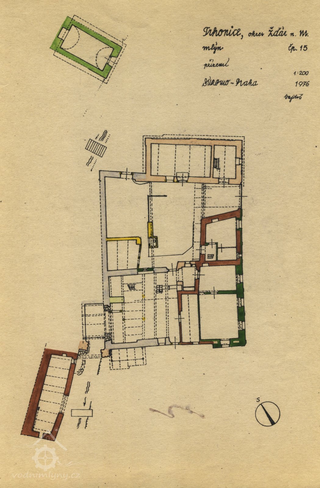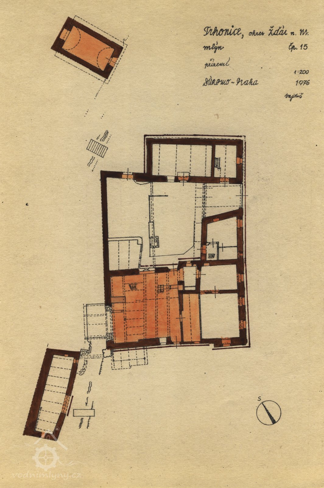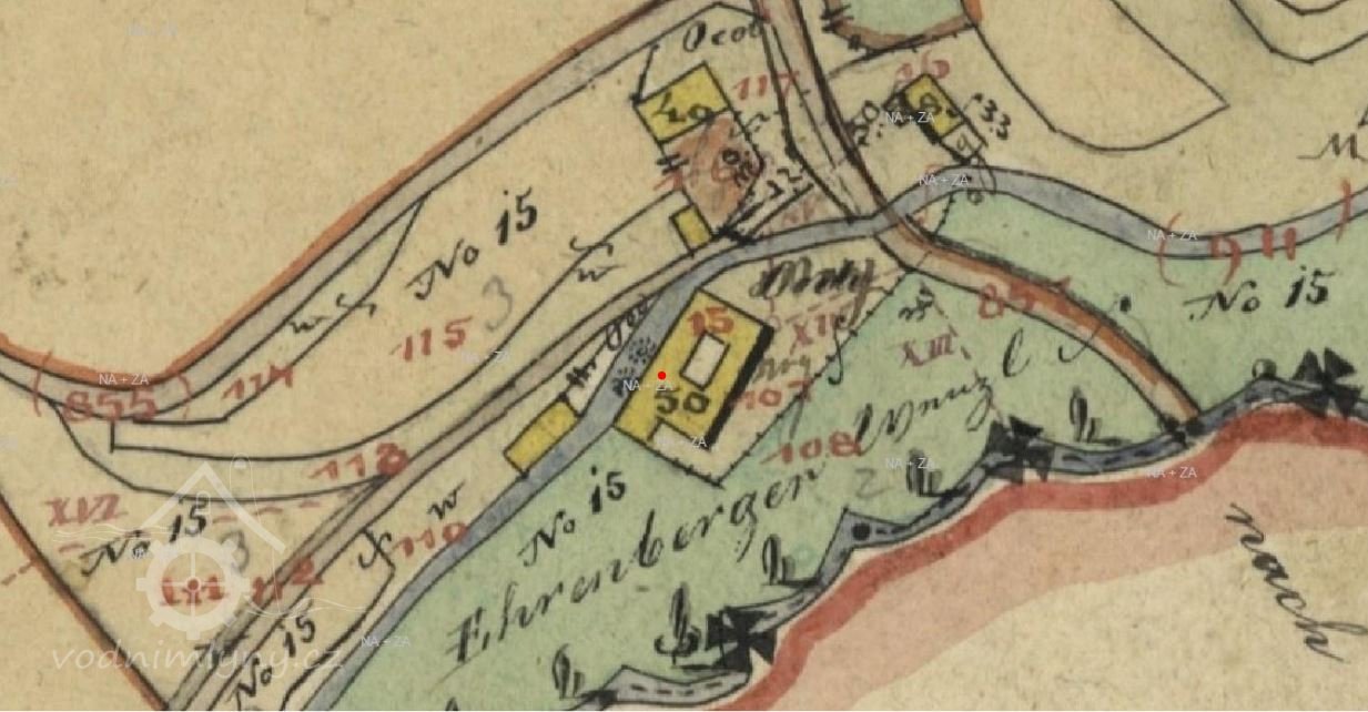 PopisV r. 1930 zde byla 2 vodní kola na svrchní vodu, každé s průtokem 0,122 m3/s, spádem 4,5 m, výkonem 4,75 k.