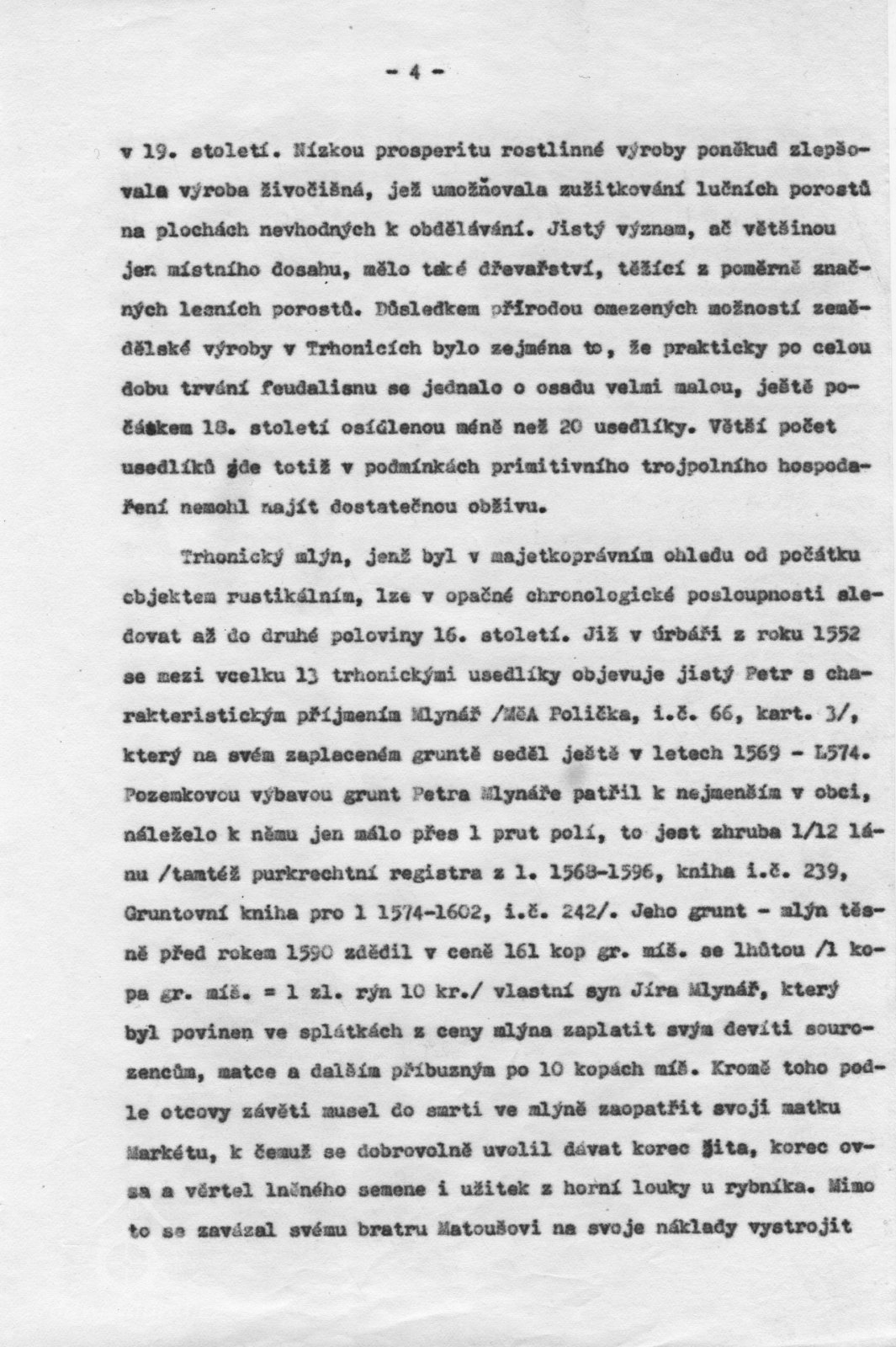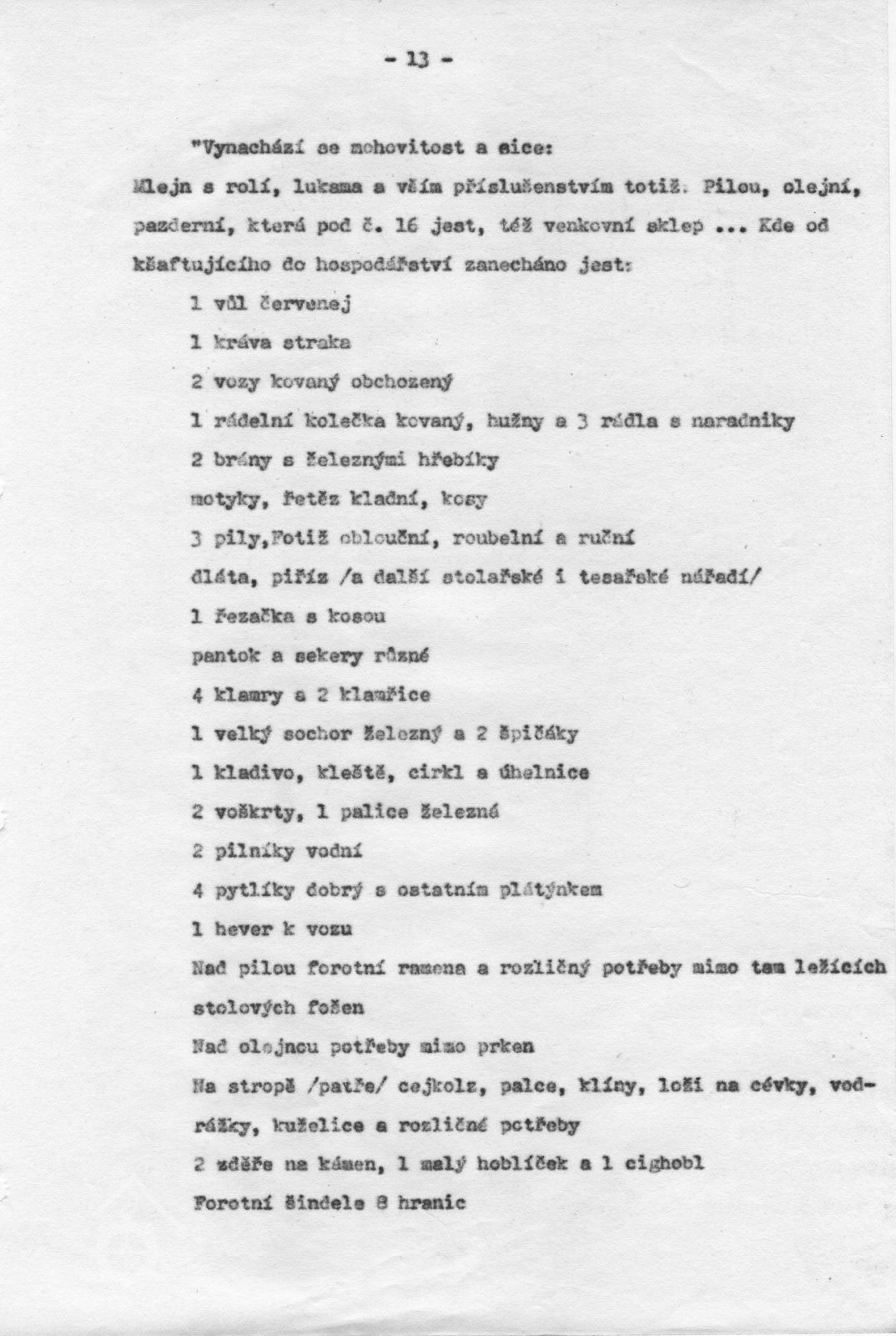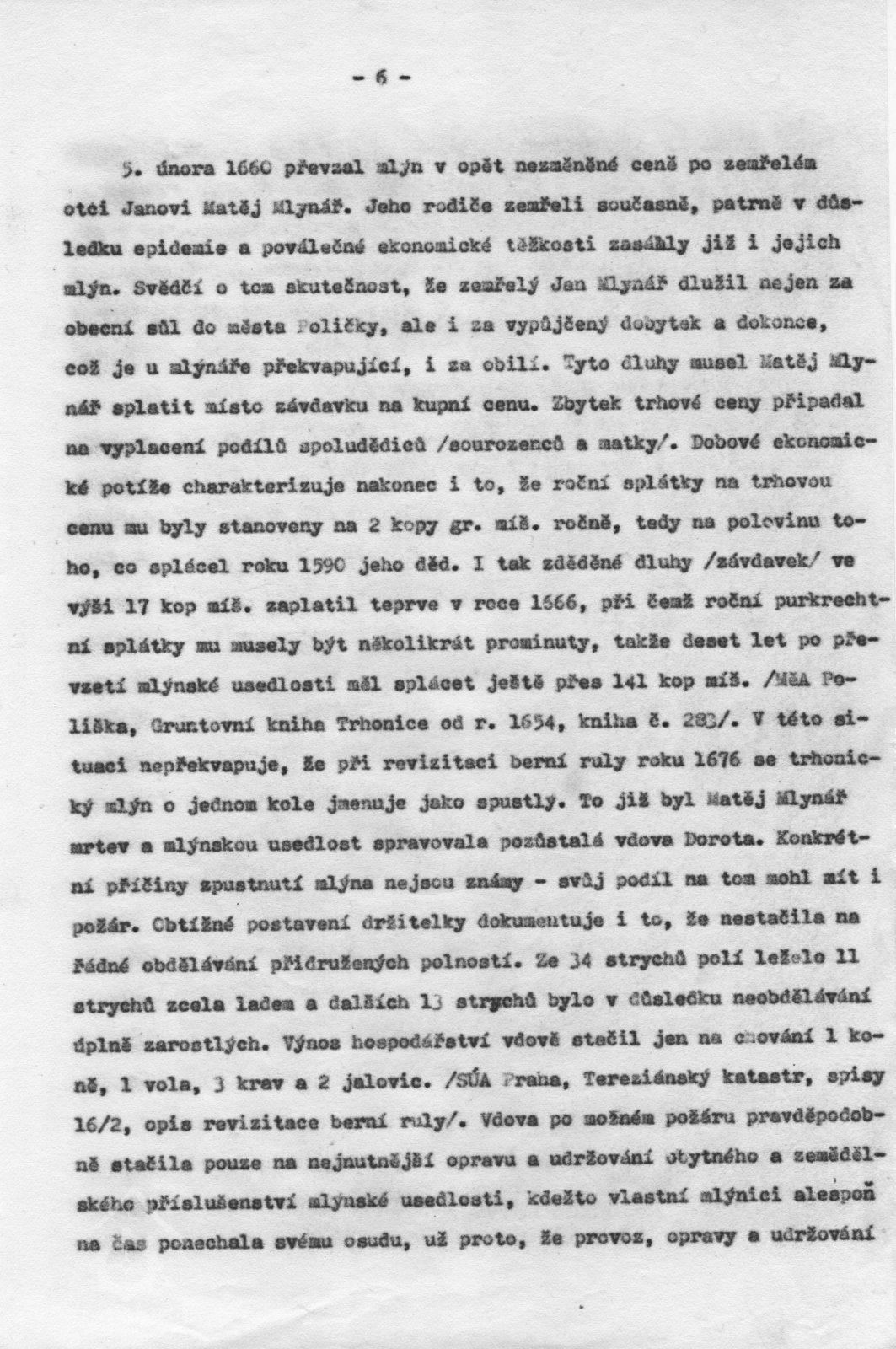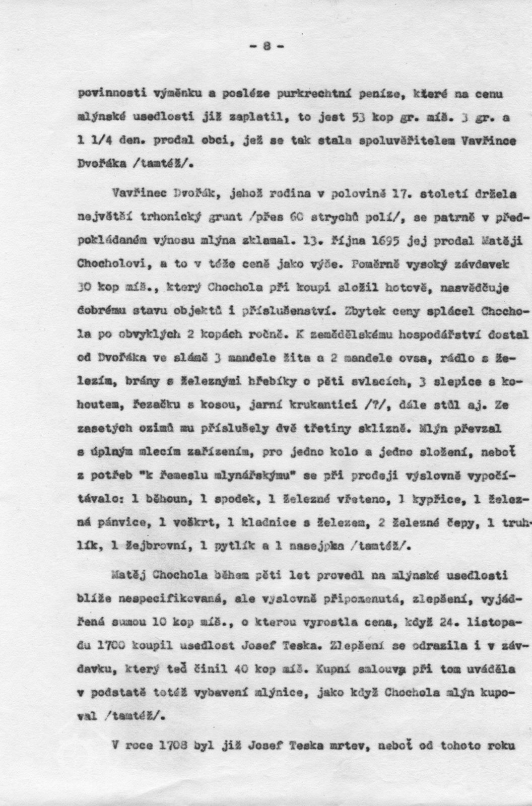 1651 Soupis poddaných podle víry: mlynář Jan Mlynář (50 let), katolík, manželka Dorota (26)