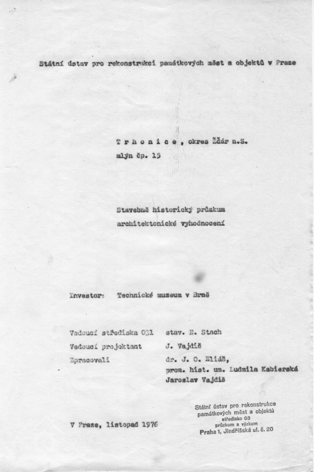 David Veverka - posudek technologie Trhonického mlýna pro NPÚ v roce 2012