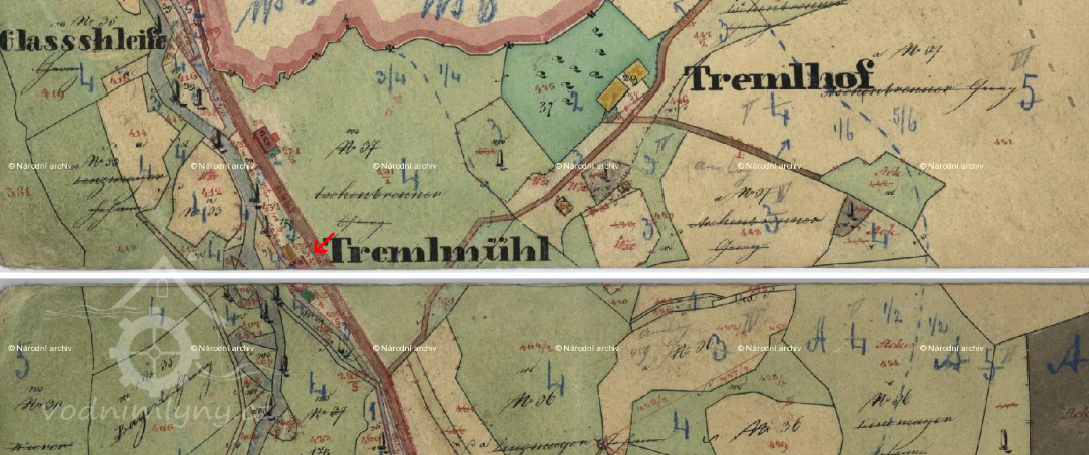 V 19. stol. mlýn přestavěný na brusírnu skla.