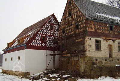 V letech 2003-20011 následně proběhla postupná celková rekonstrukce zchátralého areálu bývalého vodního mlýnu čp. 9 s přilehlým dvorem za přispění z rozpočtu Karlovarského kraje. Záchranné práce byly započaty v roce 2003 celkovou opravou bývalé vozovny. Provedena byla rekonstrukce střechy včetně krovů a hrázdění s nutnou výměnou poškozených trámů, vybourány byly původní arkády. V následujícím roce 2004 byly realizovány výplně hrázdění, opraveno nosné zdivo a objekt byl nově omítnut. Roku 2005 byly poté provedeny tesařské práce na hlavním obytném stavení s mlýnicí, na jehož střeše byla v roce 2006 položena nová střešní krytina a opravena zvonička. V letech 2007-2008 bylo provedeno vyplnění a nátěry hrázdění a objektu, který byl následně nově omítnut.