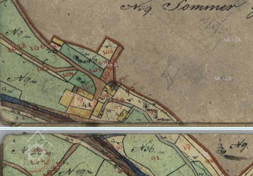 PopisV r. 1930 zde byla 3 kola na svrchní vodu, průtok 0,05 + 0,06 + 0,1 m3/s, spád 3,6 + 3,5 + 3,3 m, výkon 2,9 k.