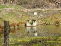 V novém rybníčku před mlýnem, postaveném na místě pily, se dochoval betonový sokl katru.