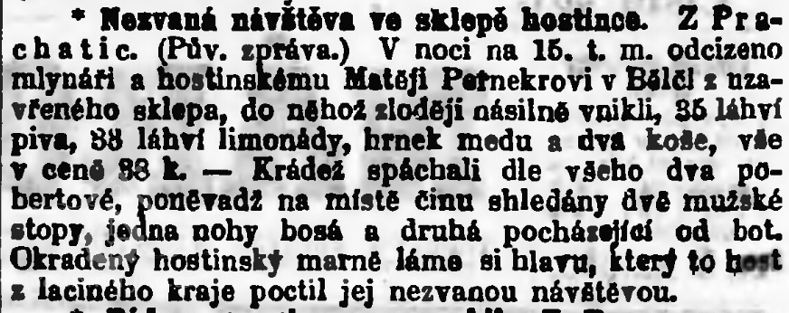 15.3.1935 v nucené dražbě zakoupil za 118.400 Kč švagr Matěj Turinský, státní podhajný v Bělči, Eduard Pernekr s manž. se odstěhovali do Záblatí