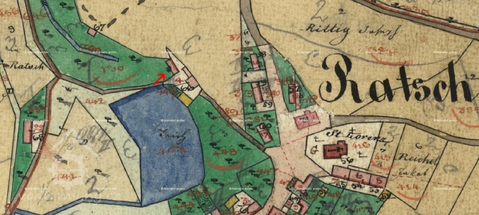 V roce 1930 byl majitelem mlýna Hanuš Adolf. Potok je uváděn jako bezejmenný.