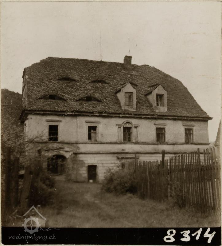 Patrová budova mlýna z roku 1812 je obdélného půdorysu s polovalbovou střechou s vikýři.