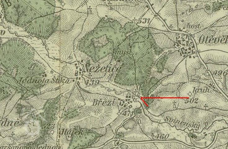 1880 Březí - počet obyvatel české národnosti 184, 34 domů, dva mlýny